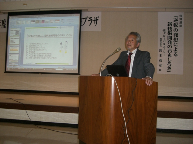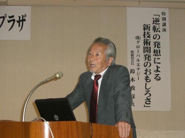 | 5月20日(水)、山口県周南市の東ソークラブにて周南新商品創造プラザの総会が開催され、特別講師として当社会長が招待されました。『逆転の発想による新技術開発のおもしろさ』のテーマで、約1時間30分ほど講演させて頂きました。100名程の方々がすごく興味深く話を聞いて頂き、大変盛況な基調講演となりました。 | ||